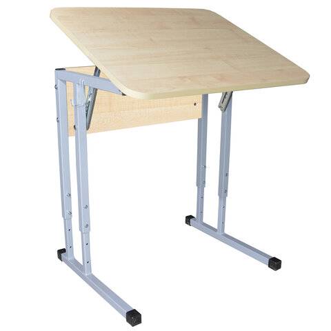 Стол-парта 1-местный, регулируемый угол, СУТ.54-01, 600х500х520-640 мм, рост 2-4, серый каркас, ЛДСП клён