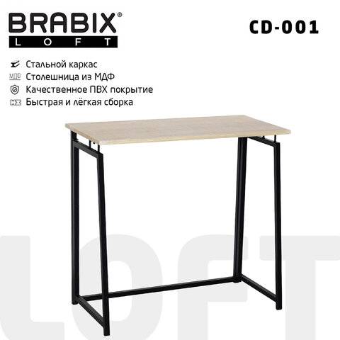 ПодробнееСтол на металлокаркасе BRABIX LOFT CD-002, 1000х500х750 мм, складной, цвет дуб антик, 641213