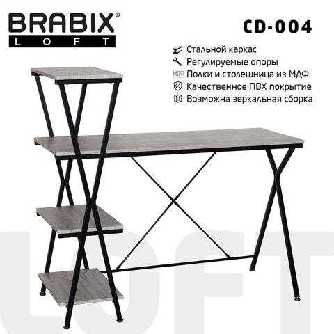 ПодробнееСтол на металлокаркасе BRABIX LOFT CD-008 (ш900*г500*в780мм), цвет дуб антик, 641864