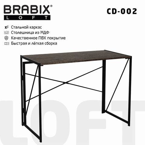 ПодробнееСтол на металлокаркасе BRABIX LOFT CD-002, 1000х500х750 мм, складной, цвет морёный дуб, 641212